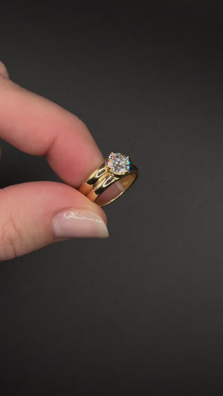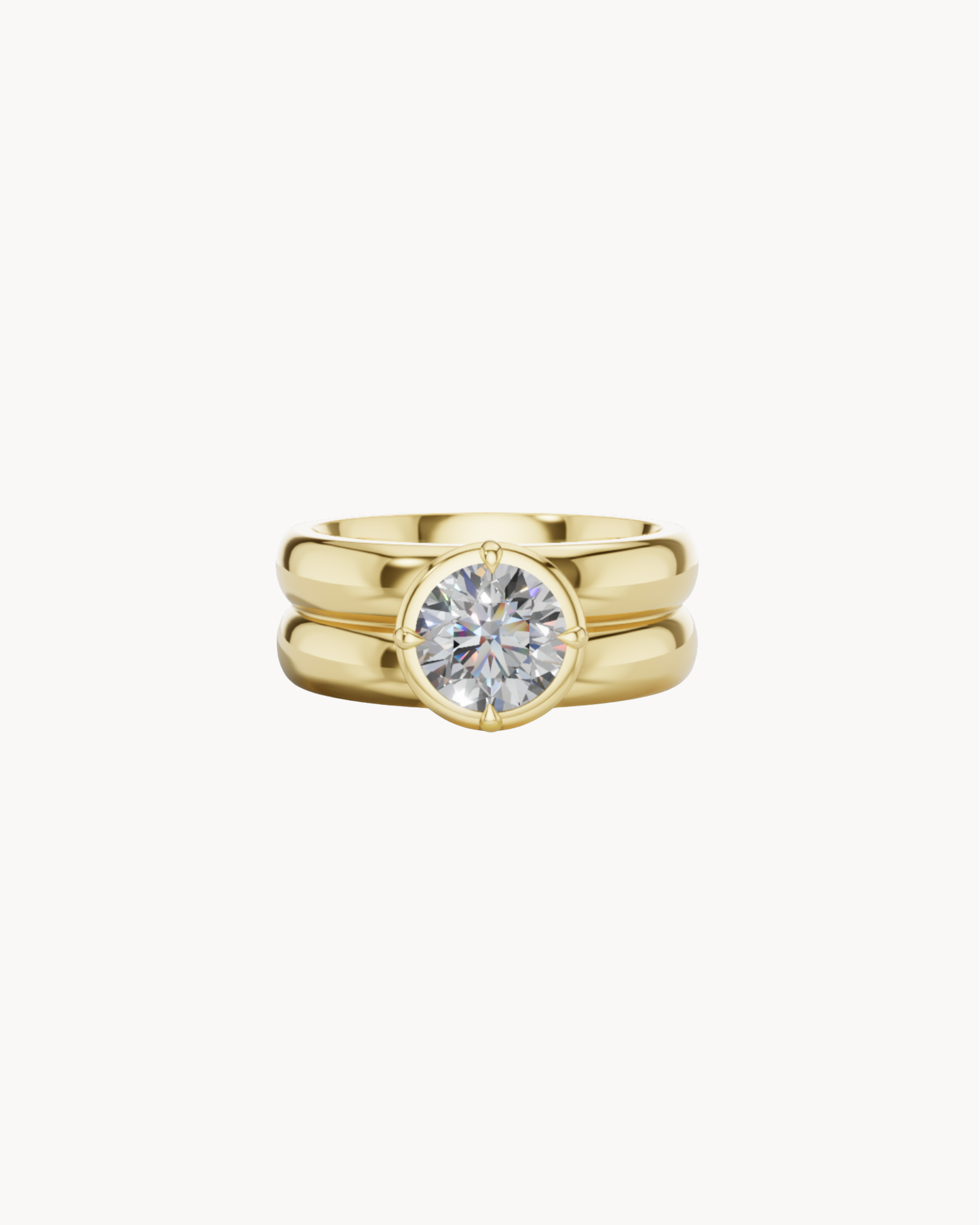 ANNA No. 1 pairs a 1.0 carat old European–cut lab-grown diamond with a solid 14k gold double band. The stone sits in a minimal four-prong setting with a faux bezel that highlights the cut’s distinctive sparkle, while the stacked band offers a modern, structured look. It’s a timeless shape with a contemporary feel, designed for everyday wear.